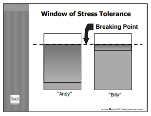 “A child’s window of stress tolerance is defined by his ability to withstand pressure, overwhelm and fear without becoming dysregulated and without reaching his ‘breaking point.’”