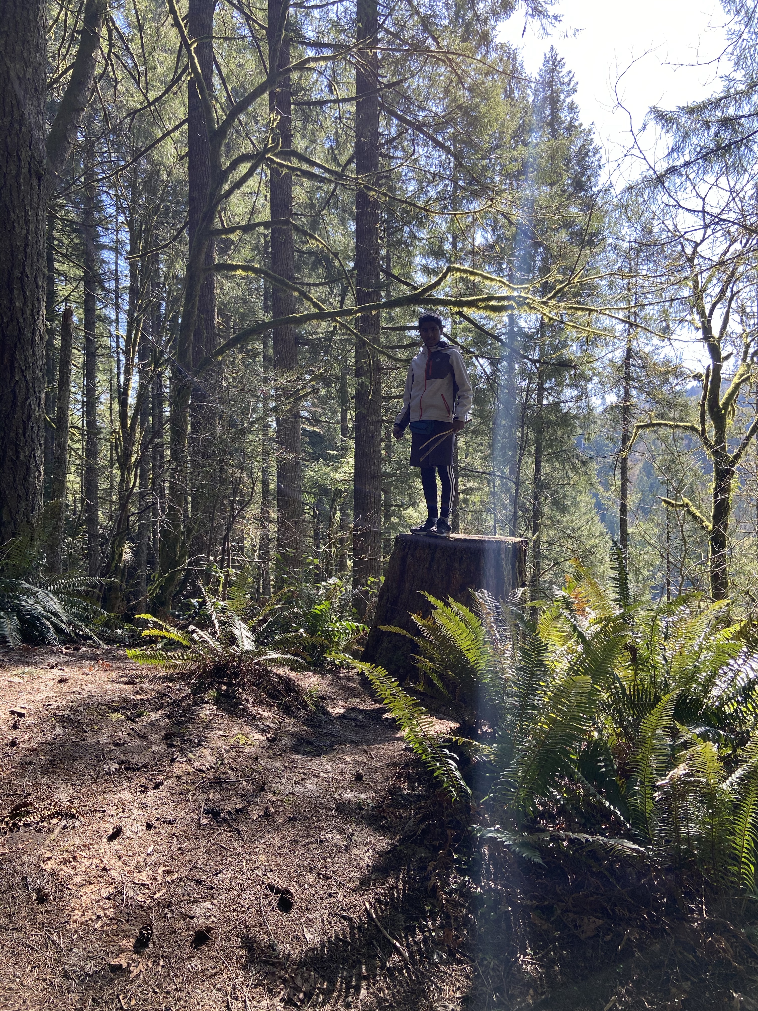Meanwhile, our little family had the big woods and the beach all to ourselves. We wandered among tall trees, we marveled at signs of life returning underfoot, we threw sticks, we bathed Leo.