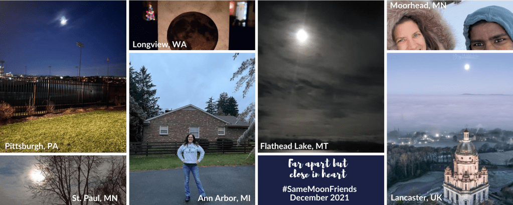 In December, #SameMoonFriends shared selfies, moons and even a moon-inspired art project! Thank you to Heather, Jackie, Janet, Jhana, Linda and Sarah S., who sent images from Michigan, Minnesota, Montana, Pennsylvania, Washington and the U.K. (via Washington).