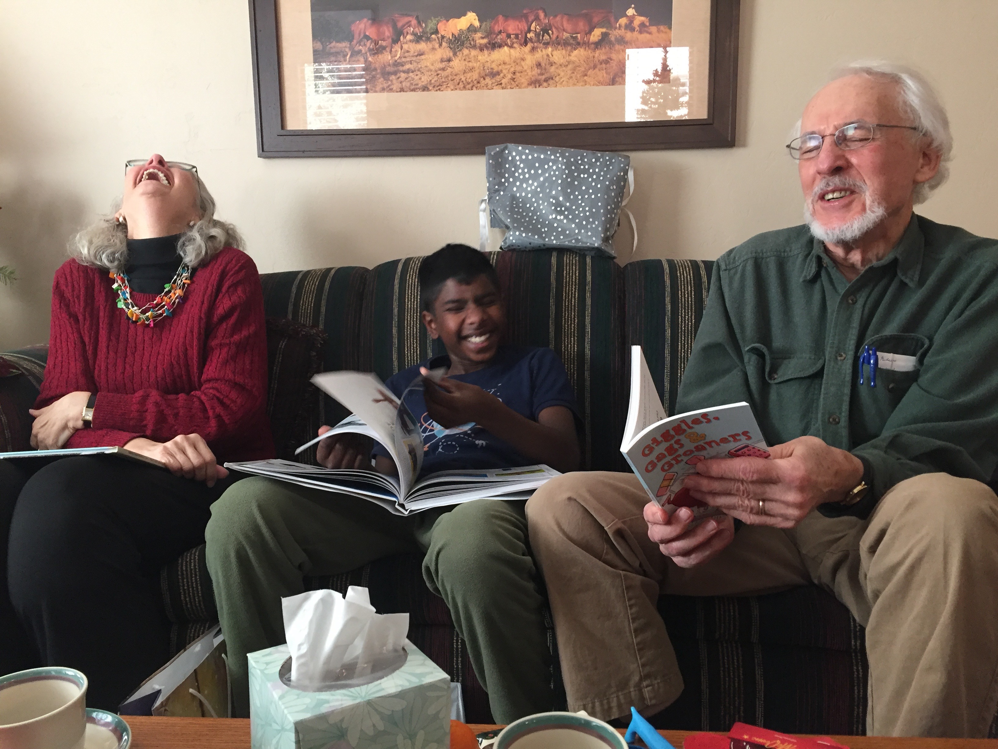 Memories of Eleanor Obituary for Eleanor “She Sparks Joy” — Sarah’s eulogy Memorial service Mom cracks up (2017) As Dad read to Mom and D from the “Giggles, Gags & Groaners” book, they all cracked up. Especially Mom. Family photos Share this:Tweet Email a link to a friend (Opens in new window) Email Print (Opens in new window) Print Like Loading...