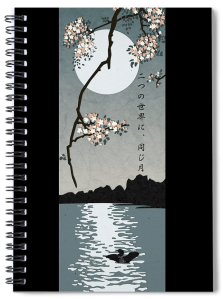 With its cherry blossoms and papercut style, “Loon Landing” contains echoes of the two years I spent in Japan, while the lake and the loon are nods to my home state of Minnesota. The Japanese characters read “futatsu no sekai ni, onaji tsuki” — “two worlds but the same moon.”